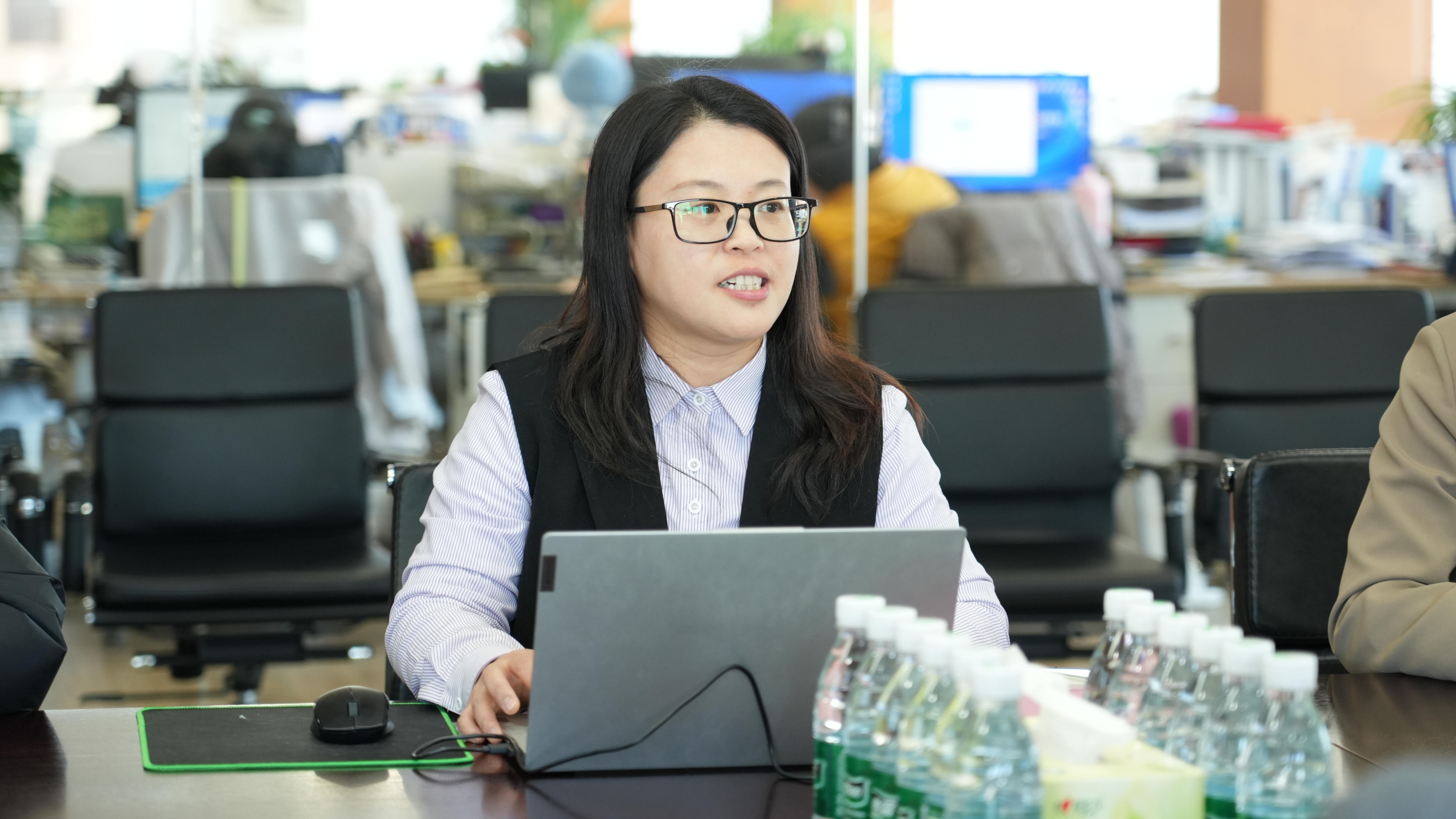 活動伊始,趙榮帶領葉磊書記一行參觀集團辦公區(qū),講解了天俱時的業(yè)務布局和企業(yè)文化概況。在隨后的座談會上,張偉玲詳細介紹了天俱時從1998創(chuàng)立至今的發(fā)展歷程——從最初的“幸存者”階段,到成長為行業(yè)“挑戰(zhàn)者”,再到如今正逐步邁向“引領者”與“顛覆者”的宏偉愿景。隨后,她結合公司在不同發(fā)展階段的關鍵選擇與典型案例,生動闡釋了天俱時企業(yè)文化的底層邏輯。最后,她介紹了天俱時的人力資源建設和人才培養(yǎng)體系,重點展示了公司在人才晉升機制和職業(yè)成長路徑等方面的建設成果。